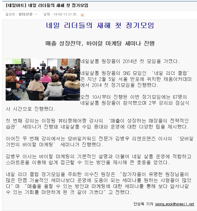 ³×Àϸ®´õ Ŭ·´(ȸÀå À̼öÁø)ÀÇ »õÇØ ù ¼¼¹Ì³ª °ü·Ã ±â»ç³»¿ëÀÔ´Ï´Ù